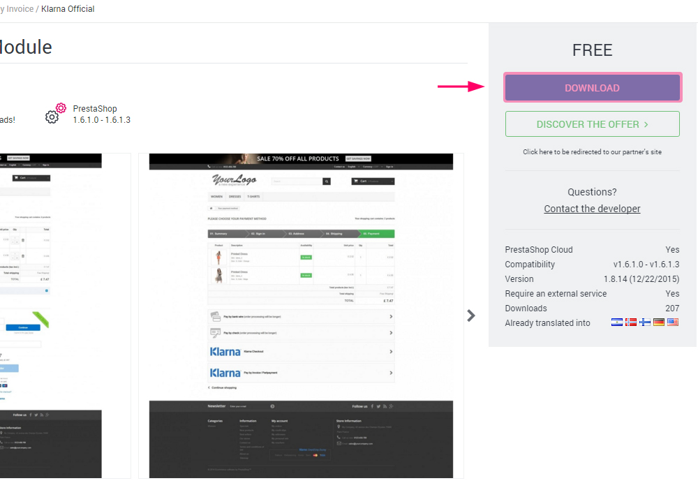 Heads up! Klarna Official for PrestaShop can be downloaded free of charge through PrestaShop add-ons (