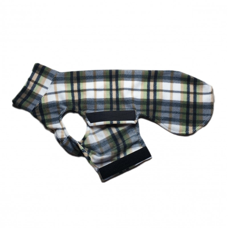 Dieser hochwertige Whippet Pullover aus Polar Fleece ist die ideale Wahl für kühle Tage in der Übergangszeit. Das weiche, karierte Fleece in Grün-Grau-Beige hält Ihren Whippet angenehm warm und schützt ihn gleichzeitig bei leichtem Regen vor Nässe.