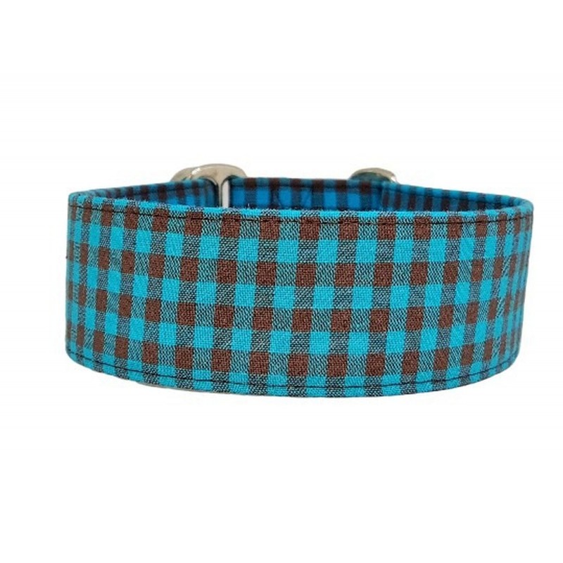 Wunderschönes Windhundhalsband mit Vichy-Karo in den Farben Türkis und Braun.